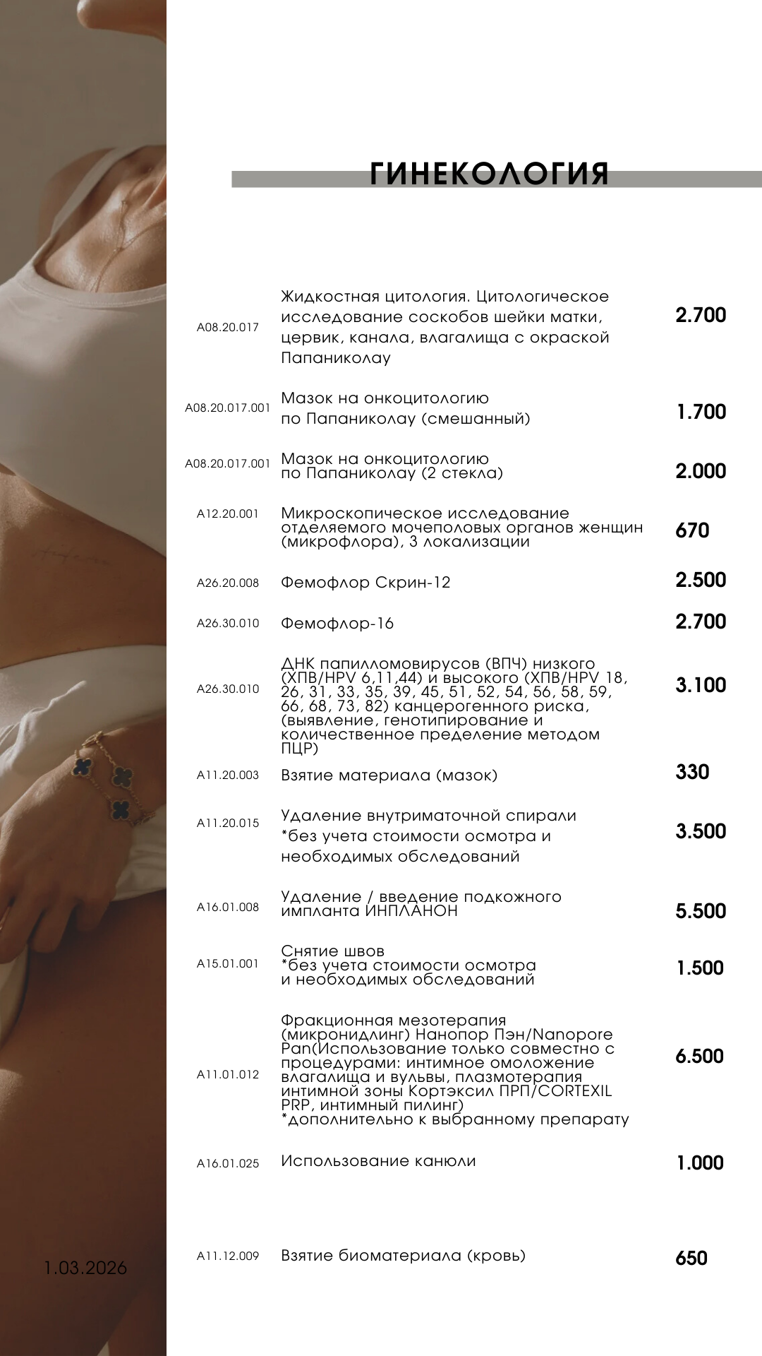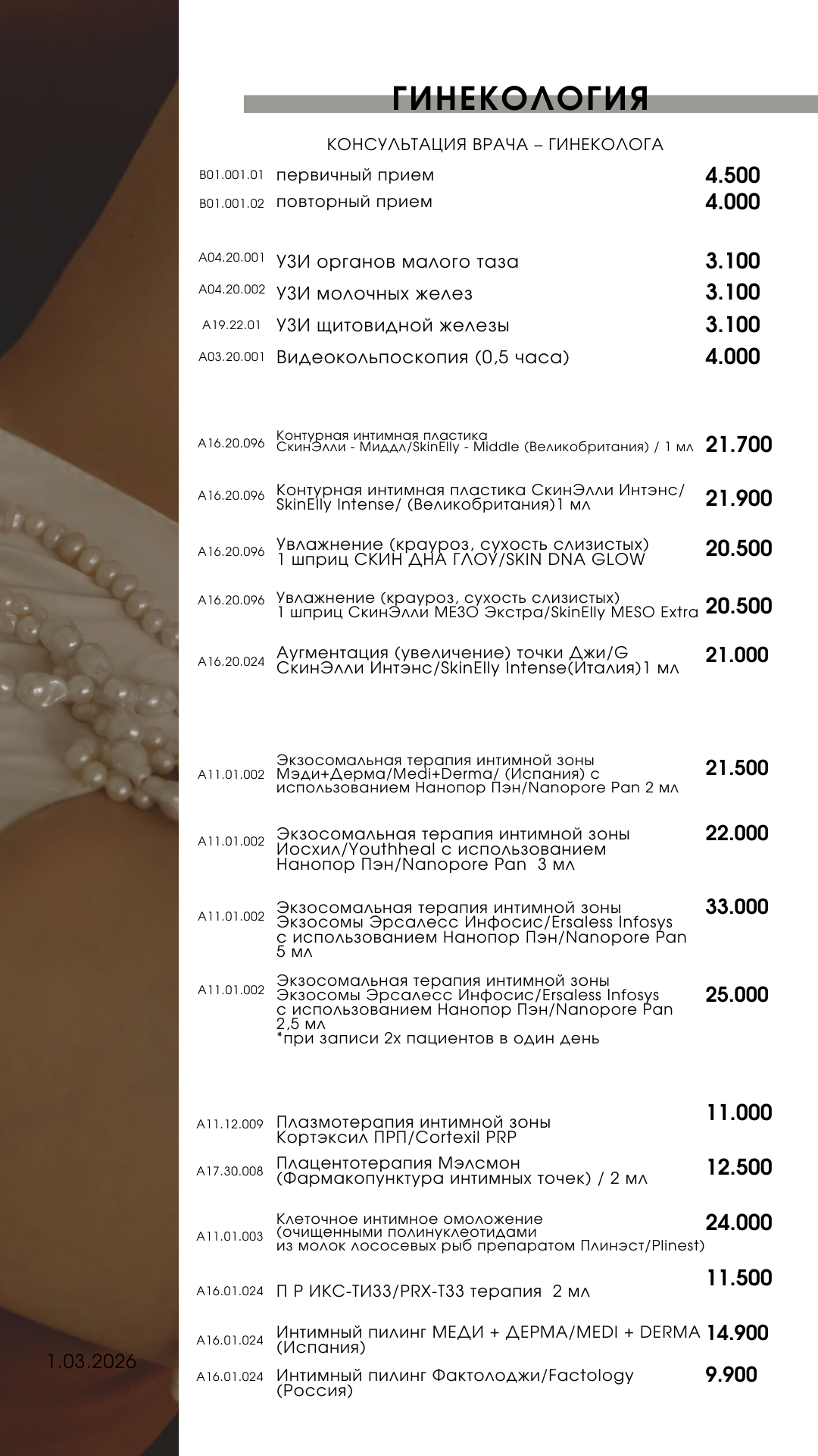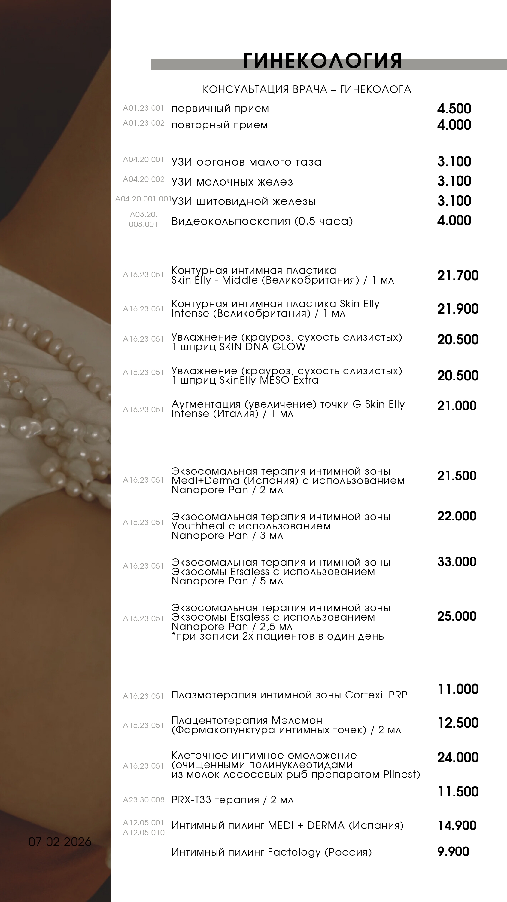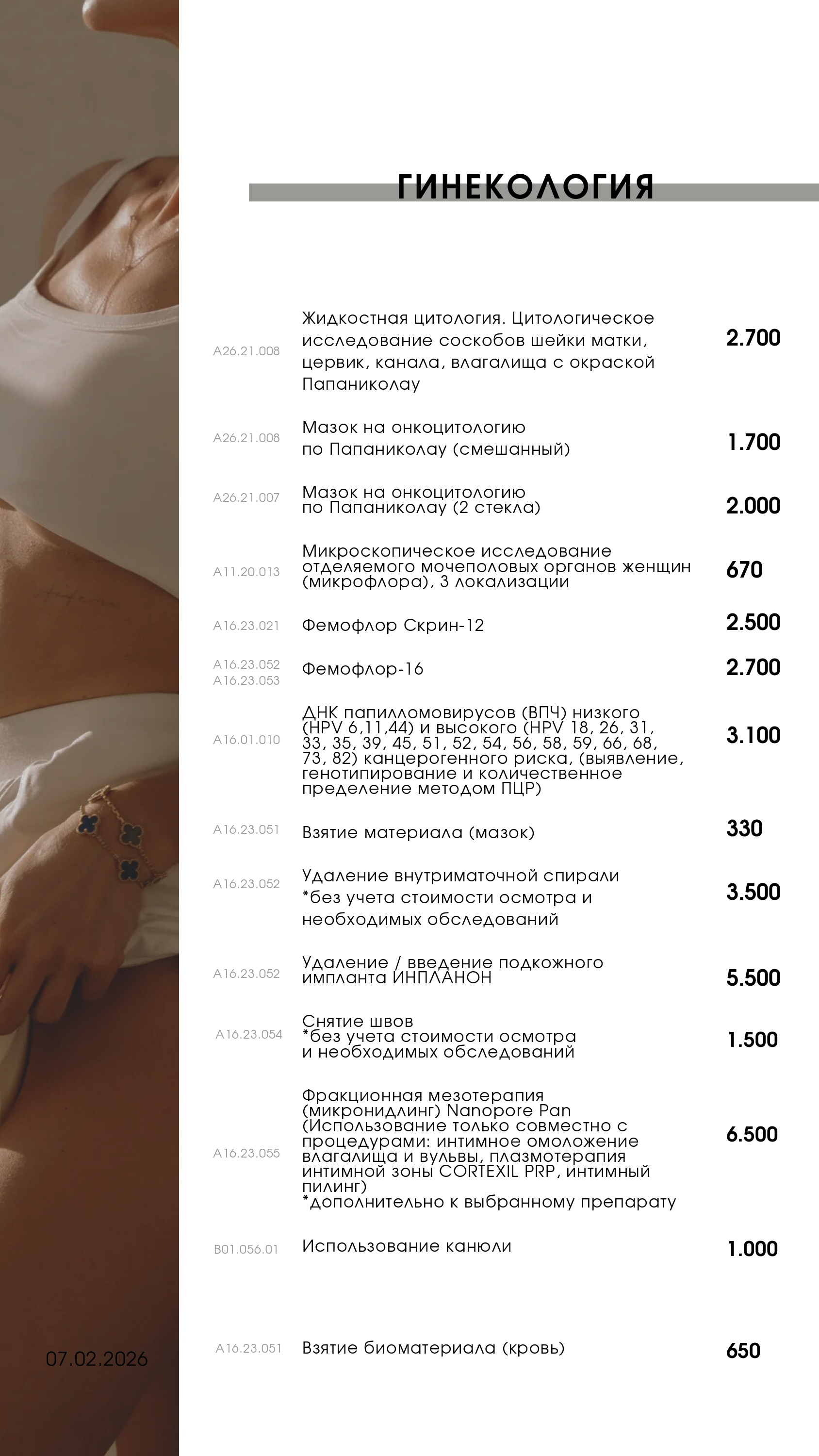 Прейскурант на услуги клиники