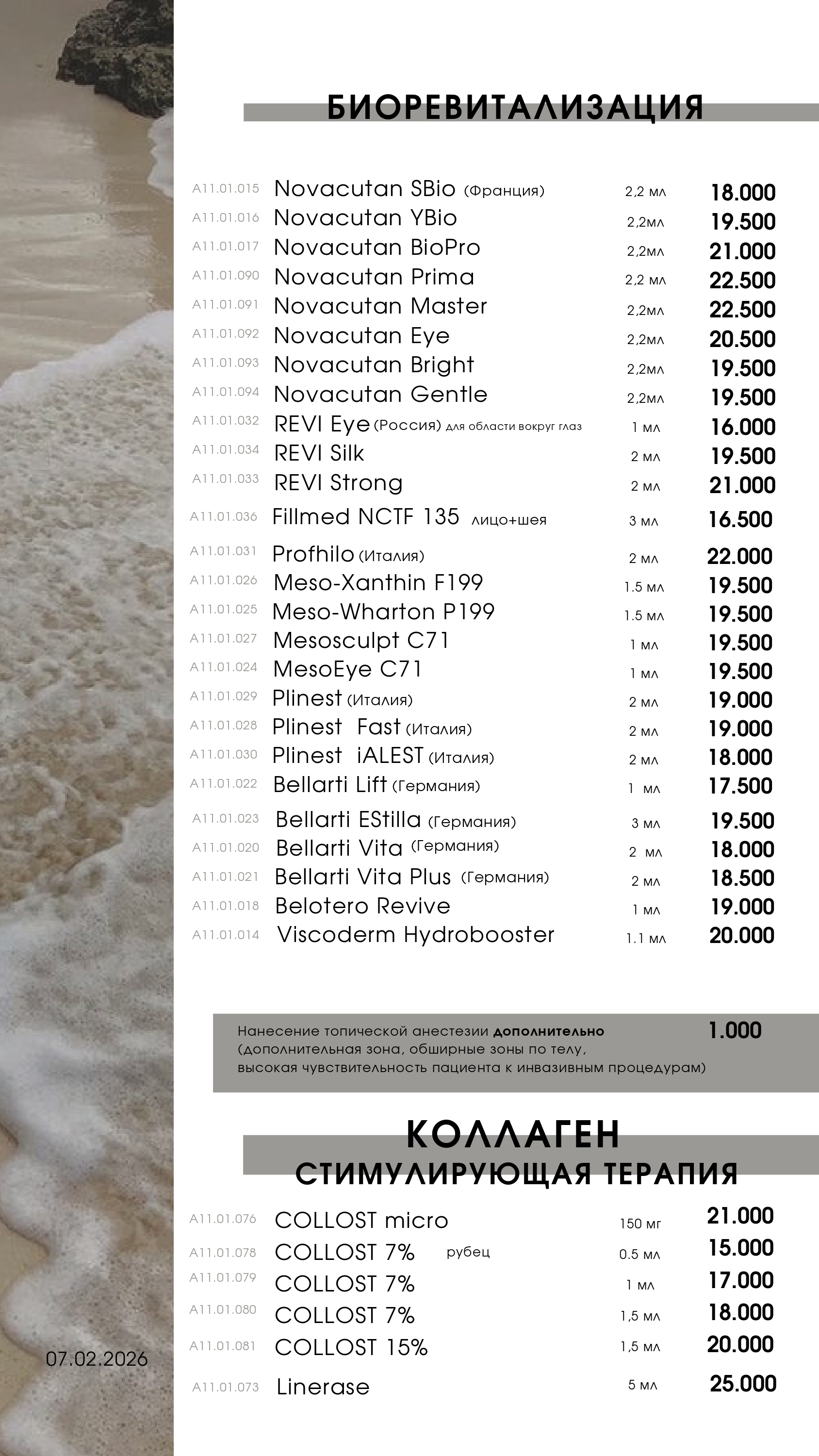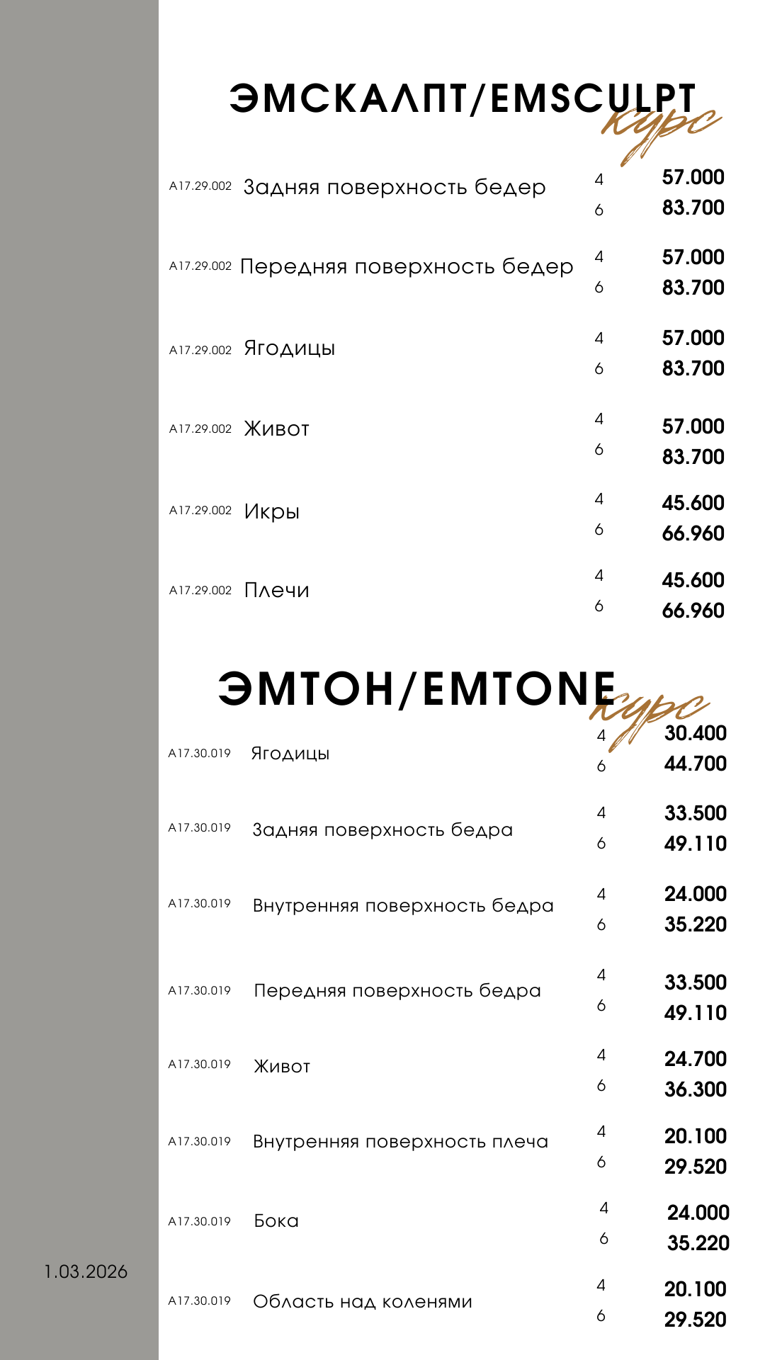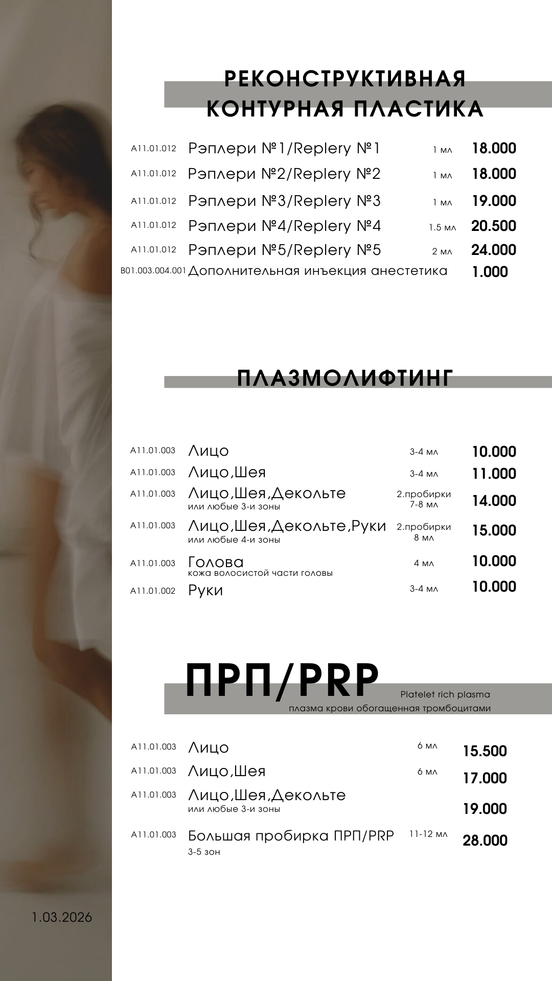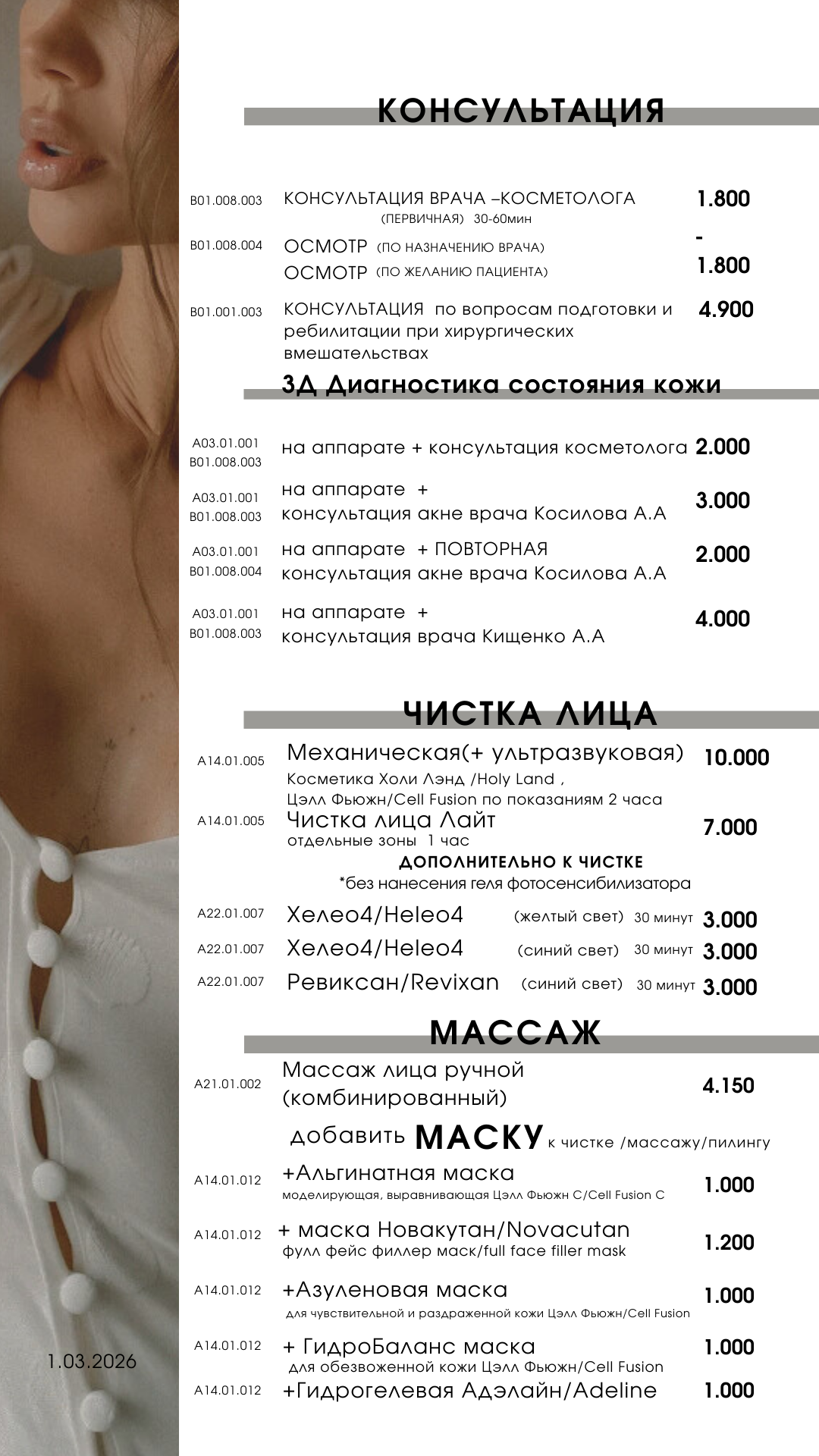 Прейскурант на услуги клиники